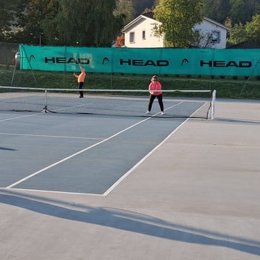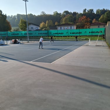 Cours de tennis pour enfants et adultes à Heyrieux. Club de tennis avec court couvert.